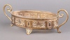 | 291 | An Art Nouveau repousse gilt brass and glass dish holder with scroll handles 42cm | 20-30 |