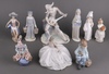 | 339 | A collection of Lladro figures - boy clown on a ball 5813 17cm, a girl with an arm full of oranges 15cm, a boy water carrier 22cm, lady with lilies 22cm, girl with beach ball 5219 19cm, girl with a cane 21cm, lady with a fan 5359 18cm (a/f), a Pierrot 24cm and a Nao boy with a rabbit | 50-75 |