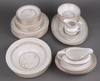 | 343 | A Royal Doulton White Nile pattern dinner service comprising 8 side plates, 8 dinner plates, 2 oval serving plates, sauce boat and stand, bowl, cake plate, 2 oval dishes, 8 small plates, a sugar bowl, 8 dessert bowls, milk jug | 30-40 |