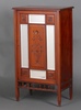 | 27 | A pair of mahogany bedside cabinets enclosed by panelled doors, raised on bracket feet 45cm h x 40cm w x 37cm d together with a matching 4 door cupboard | 50-75 |