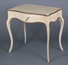 | 30 | A French grey painted table of serpentine outline, raised on cabriole supports 75cm h x 77cm w x 50cm d | 30-40 |