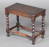 | 34 | A 1930's rectangular oak stool, raised on spiral turned supports 39cm h x 45cm w x 25cm d | 30-40 |