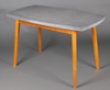 | 35 | A mid-century shaped beech framed and formica topped kitchen table, on outswept supports 75cm h x 117cm w x 69cm d | 30-40 |