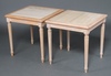 | 43 | A pair of square limed oak finished lamp tables with white veined marble tops, raised on turned and fluted supports 61cm x 59cm | 20-30 |
