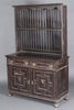 | 45 | James Shoolbred and Co., a Victorian Gothic style ebonised dresser, the raised back with moulded cornice, the base fitted 2 drawers above double cupboard enclosed by geometric panelled doors, on bun feet 191cm h x 121cm w x 51cm d | 30-40 |