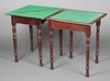 | 47 | Lyle, a mahogany square folding card table with green baize top on turned supports 71cm h x 60cm w and 1 other (a/f) | 20-30 |