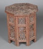 282 | An octagonal carved and pierced Indian hardwood folding occasional table with floral decoration 49cm h x 46cm w x 45cm d (a/f) | 30-50 |