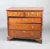 293 | An 18th Century oak, pine lined, chest of 2 short and 3 long drawers with brass pear drop handles, raised on bracket feet 94cm h x 101cm w x 56cm d (a/f - requires full restoration) | 30-50 |