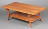 56 | A rectangular 2 tier oak occasional table, on outswept supports 43cm h x 125cm w x 57cm d | 30-40 |