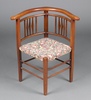 | 371 | An Edwardian mahogany stick and rail back corner chair, the seat upholstered in tapestry material, raised on square supports 72cm h x 65cm w x 48cm d | 30-50 |
