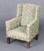 450 A child's 1930's winged armchair upholstered in green material 30-40
