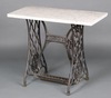 451 A garden table formed from the base of a Singer treadle sewing machine and with rectangular granite top 74cm h x 92cm w x 43cm d 30-40
