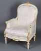 454 A Louis style white and gilt painted armchair raised on turned and fluted supports (damage to arms, stains to seat and back) 30-40