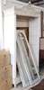 456 A 19th Century white painted armoire with carved cornice, the interior enclosed by a pair of arch panelled doors, raised on turned supports 231cm h (missing bolts) 80-100
