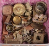 | 459 | A pair of 1930's pierced brass bookends in the form of a galleons and a collection of brassware, contained in a small suitcase | 30-40 |