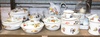 | 473 | A collection of Royal Worcester Evesham Gold pattern dinner ware comprising platter, oval dish, meat plate, bowl, 3 section dish, sauce boat and stand, 8 Grattan dishes, coffee pot, teapot, small sauce boat and stand, 7 dinner plates, 8 tea plates, 6 tea cups, 6 saucers, 6 twin handled soup bowls and 6 saucers (1 chipped), etc | 50-75 |
