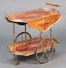 | 43 | Mid Century, a 1960's Sorrento inlaid shaped two tier tea/drinks trolley 69cm h x 76cm w x 42cm d | 30-40 |