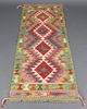 | 49 | A white, green and terracotta ground Chobi Kilim runner with diamond design to the centre 196cm x 72cm | 40-50 |