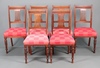 | 36 | A set of 6 Edwardian mahogany stick and rail back dining chairs with overstuffed seats, raised on turned supports (require re-upholstery) | 20-30 |