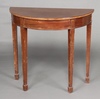 | 44 | A Georgian style mahogany demi-lune side table, raised on square tapered supports with spade feet 77cm h x 85cm w x 43cm d (contact marks in places) | 30-40 |