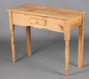 | 26 | A Victorian rectangular pine side table fitted a frieze drawer, raised on turned supports 72cm h x 90cm w x 41cm d (split to top) | 40-60 |   |
