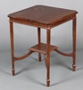 | 51 | An Edwardian square oak occasional table raised on square tapered supports with undertier and spade feet 32cm h x 60cm (ring and contact marks in places) | 20-30 |