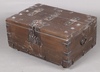 | 74 | An Eastern hardwood trunk with hinged lid and iron drop handles 40cm h x 87cm w | 40-60 |