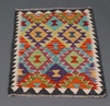 | 119 | A black, green and brown ground Chobi Kilim with overall geometric design 73cm x 63cm | 20-30 |