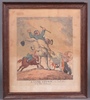 | 155 | Two Victorian coloured prints "Fox Hill" 12cm x 17cm and "West Horsley Place" 13cm x 17cm, both in Hogarth frames, 2 coloured hunting and racing prints 8cm x 14cm in mahogany frames and a satirical print "A Land Storm" in an oak frame | 30-40 |