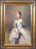 | 169 | A coloured print on canvas, study of a young Queen Victoria standing wearing a white gown, 89cm x 59cm in a gilt frame | 20-30 |