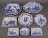 | 199 | Five Delft blue and white wall plaques decorated canal scenes, a Delft charger and 2 Delft dishes | 20-30 |