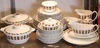 | 201 | A 47 piece Alfred Meakin Geo-White Randon pattern dinner service comprising pair of twin handled tureens and covers, 5 dinner plates, 9 side plates (1 chipped), 12 tea plates (some pieces with crazing and contact marks), 5 dessert bowls, 6 cereal bowls, oval meat plate, sauce boat and stand, large jug, small jug, preserve jar and cover, jar and cover, sugar bowl | 20-30 |