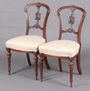 | 178 | A pair of Victorian carved walnut slat back dining chairs with over stuffed seats, raised on turned supports | 30-40 |