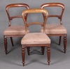 | 181 | A set of 3 Victorian bleached mahogany spoon back dining chairs with carved mid rails, seats upholstered in light brown leather on reeded supports | 30-40 |
