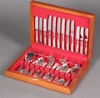 | 201 | A cased silver plated Old English pattern pastry set and a French chrome 44 piece canteen of cutlery in a mahogany box | 30-40 |