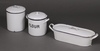 | 194 | A blue and white enamelled fish kettle 48cm w, a ditto bread bid 18cm h and 1 other 20cm h | 30-40 |