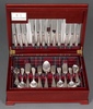 | 18 | Arthur Price, a 124 piece canteen of Old English pattern silver plated flatware comprising 12 fish knives, 12 fish forks, 12 dinner knives, 12 dinner forks, 4 serving spoons, 12 pudding spoons, 12 pudding forks, 12 tea knives, 12 tea spoons and 12 coffee spoons, contained in a mahogany canteen box | 80-120 |   |