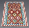 | 20 | A yellow, turquoise and green ground Chobi Kilim rug with overall geometric design 126cm x 80cm | 50-70 |   |